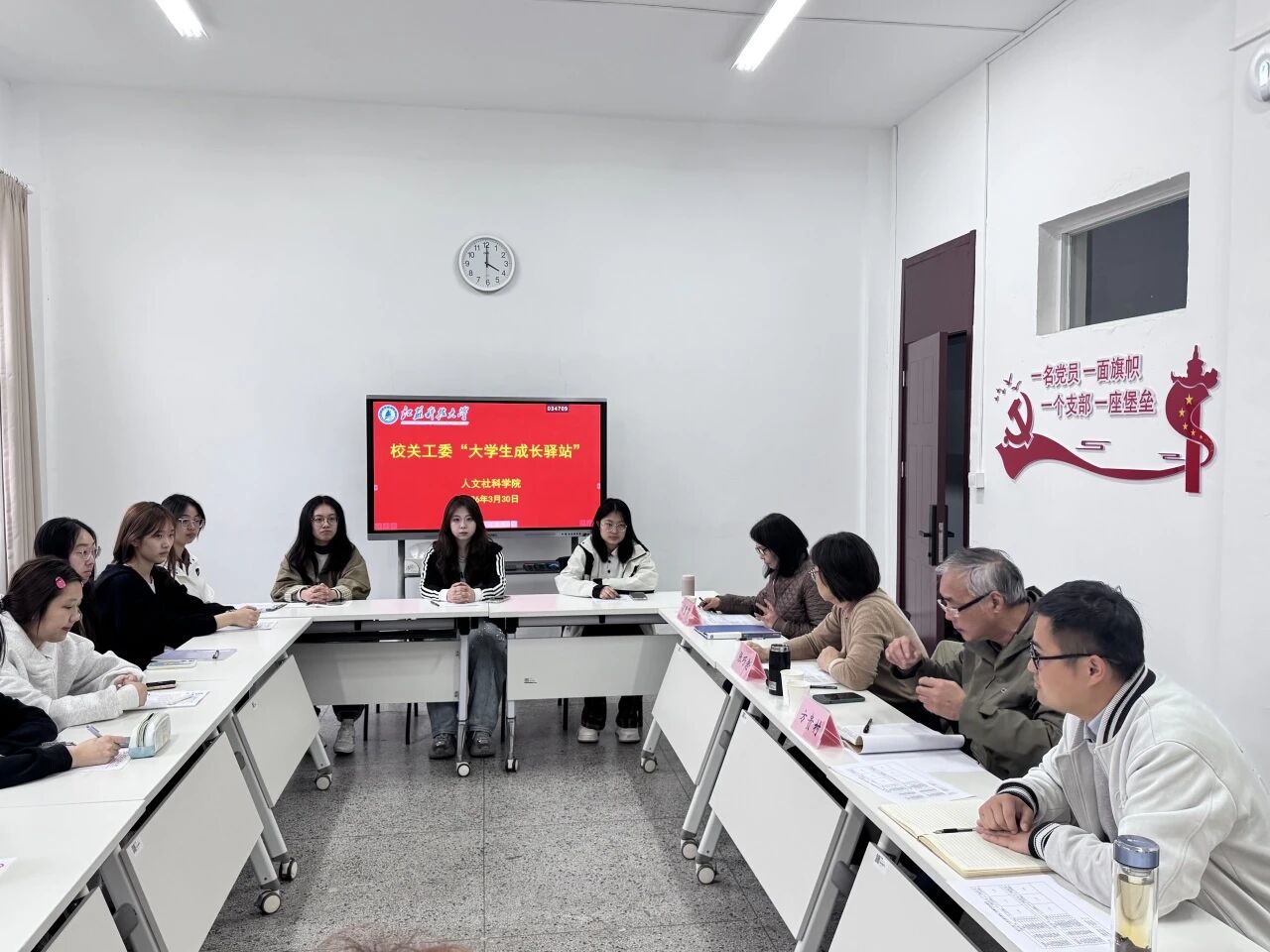 为进一步关心青年学生成长,帮助同学们更好地规划大学生活、提升综合素养,3月30日下午,校关工委大学生成长驿站指导老师张巧念、方贵村、储璧茜,人文社科学院团委书记、关工委秘书长井升平以及大一年级全体班委,围绕生涯规划、班级建设、学业发展等内容进行了深入交流。